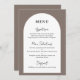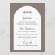 Present your wedding day feast with our elegant arched wedding reception menu! This beautifully coordinated menu features the same sophisticated arch shape design as your suite, creating a cohesive and polished look for your table settings. Your personalized dinner details, from appetizers to desserts, are clearly presented in a classic script font, ensuring your guests can anticipate and enjoy every course. This custom wedding menu is the perfect detail to enhance your reception decor and a lovely keepsake from your special day.