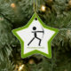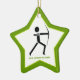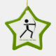 Archer with his bow black, green archery custom ceramic star shape ornament featuring a minimalist icon of a black silhouette of an archer and your text on white background with green border.