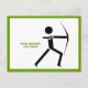 Archer with his bow black, green archery custom horizontal postcard that showcases a minimalist icon of a black silhouette of an archer and your text on white background with green border. Personalize it and change text with monogram, name or your message.