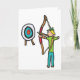 Archery design shows archer aiming arrow at competition target. Uses traditional style longbow with red grip design and wears protective leather arm strap and quiver with arrows. A cool graphic for archers and archery fans.