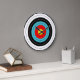 Clock with an archery target featuring concentric rings of gold, red, blue, black, and white. Customizable. A great clock for the sports enthusiasts in your life.