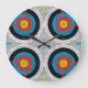 This Archery Targets clock has a archery targets pattern with mid century modern design style. There are bullseyes and scoop finders made into a geometric circle minimalist pattern design all covered with texture. Each hour is marked with a dash in a matching bullseye color. You can make the pattern larger or smaller. A great design for anyone that is a sports fan of archery.