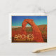 This fun design features Arches National Park with a 70s travel postcard look to it. Red canyon and the famous red arch make this national park card a winner. Moab, Utah.
