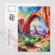 This postcard features a watercolor portrait of Arches National Park in Utah.