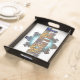 This is a well made, sturdy wooden tray with a flawless black finish and lovely map on the tray surface. It is both vintage & modern at the same time. Looks exactly like the photo; does not disappoint. So nice to find something of quality individually made and not the mass-produced 'shabby chic' merchandise seen in stores. I am so pleased to be able to give this to my college-age niece for her birthday. This can be used as a tray to hold jewelry or toiletries, or hung on the wall as art. The map surface is sealed (it is slightly shiny) so would be moisture resistant. It is well worth the asking price but I was able to apply a sale code as well. Very happy with my purchase. Map is crisp & clear and sealed with a water-resitant finish.
