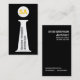 Architect abstract business cards black, yellow and white business cards, featuring a white column on black background, a circle above the column with your monogram/initials in yellow, and your text. Add your logo if desired.