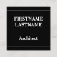 This business card design features a name, profession and contact details that can be personalized. It could be used by a building design professional such as an architect, interior decoration specialist, interior decorator or interior decoration expert.