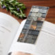The front features a slate stone texture—reminiscent of modern facade cladding—complemented by an optional functional white ruler scale (not reflecting the actual size of the bookmark) along the left edge. The reverse side showcases the word "ELEVATION" in clean, vertical typography over a semi-transparent architectural overlay, blending aesthetic form with technical function. You can customize or delete this text and background shadow. You can also add a logo if you like.