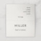 This architectural wedding place card and menu features a refined minimalist layout with a bold surname header and structured typography.