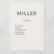 This architectural 5x7 wedding program and menu card features a bold surname header with a refined minimalist layout. Designed as a dual-sided modular format, it combines ceremony order and reception menu in one cohesive piece.
