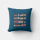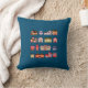 A pretty dark blue throw pillow with colorful buildings in different architectural styles - a good gift for architects.