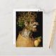 Arcimboldo Winter postcard. Oil on canvas from 1563. Giueseppe Arcimboldo painted some of the most fascinating paintings of the late Renaissance. Composing portraits with vegetables, fruits, trees, fish and other foods, the Italian artist developed a huge following within the Hapsburg court. Winter is one of his seasonal paintings and depicts a profile in portrait composed of a dead stump with only winter ivy and a few last lemons. A great gift for fans of Arcimboldo, Renaissance art, and winter paintings.