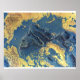 The seabed and the land masses are shown here in a beautiful relief. Among other things, submarine terrain, sea depths, fracture zones, ridges, abyssal plains, the most important geographical regions and much more are shown.