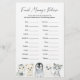Arctic animals themed baby shower finish mummy's phrase game card features a watercolor winter animals illustration and watercolor greenery eucalyptus garland and elegant handwritten style font.