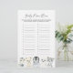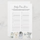 Arctic animals themed baby shower name race game card features a watercolor winter animals illustration and watercolor greenery eucalyptus garland and elegant handwritten style font.