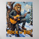 This dynamic artwork portrays a lion, looking effortlessly cool in sunglasses and a leather jacket, masterfully "shredding" an electric guitar while positioned on a snow-covered log. The scene unfolds in an arctic-like forest with bare trees and distant evergreens under a textured moonlit sky. The thick, expressive impasto creates a tangible texture, making the "Rock or Die" declaration resonate with the raw energy of the performance in a stark, cold environment.