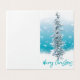Beautiful blue and silver Holiday abstract pine tree design with snowflakes and twinkle lights. Customizable!