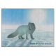 White on white. A digital painting of an Arctic Fox, Vulpes lagopus, on the polar ice. The sun hangs low in the bright blue arctic sky. Do not stare at the sun as it can harm your eyes. Add your own text. The Arctic Fox is comfortable in deep cold; it does not begin to shiver until temperatures drop to about −70 °C (−94 °F) due to its dense, multi-layered fur. Other adaptations to a frigid climate include fur on the soles of its feet, short ears, and a short muzzle. Arctic foxes live in burrows, in a blizzard they may tunnel into the snow to create shelter. The coat of the Arctic fox, sometimes blue-gray, is very effective winter camouflage. The natural hues allow the animal to blend into the environment. During the short warm season its coat changes to brown or gray, again acting as camouflage in tundra rocks and plants. During the winter, when prey is scarce, the foxes follow hunting Polar Bears on the ice pack feeding on scraps. During the summer the eat rodents, birds, eggs, and even fish. They will also feed on berries and seaweed. Arctic Foxes have extremely keen hearing, aided by their wide, front-facing ears, which allow them to locate the precise position of their prey beneath the snow. If it hears something moving under the snow it leaps into the air and pounces, punching through the snow to catch its prey. The range of the Arctic Foxes is circumpolar; they can be found throughout the far north. The only land mammal native to Iceland, it arrived by walking oversea ice at the end of the last ice age.