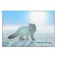 White on white. A digital painting of an Arctic Fox, Vulpes lagopus, on the polar ice. The sun hangs low in the bright blue arctic sky. Do not stare at the sun as it can harm your eyes. Add your own text. The Arctic Fox is comfortable in deep cold; it does not begin to shiver until temperatures drop to about −70 °C (−94 °F) due to its dense, multi-layered fur. Other adaptations to a frigid climate include fur on the soles of its feet, short ears, and a short muzzle. Arctic foxes live in burrows, in a blizzard they may tunnel into the snow to create shelter. The coat of the Arctic fox, sometimes blue-gray, is very effective winter camouflage. The natural hues allow the animal to blend into the environment. During the short warm season its coat changes to brown or gray, again acting as camouflage in tundra rocks and plants. During the winter, when prey is scarce, the foxes follow hunting Polar Bears on the ice pack feeding on scraps. During the summer the eat rodents, birds, eggs, and even fish. They will also feed on berries and seaweed. Arctic Foxes have extremely keen hearing, aided by their wide, front-facing ears, which allow them to locate the precise position of their prey beneath the snow. If it hears something moving under the snow it leaps into the air and pounces, punching through the snow to catch its prey. The range of the Arctic Foxes is circumpolar; they can be found throughout the far north. The only land mammal native to Iceland, it arrived by walking oversea ice at the end of the last ice age.
