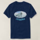 White on white. A digital painting of an Arctic Fox, Vulpes lagopus, on the polar ice. The sun hangs low in the bright blue arctic sky. Do not stare at the sun as it can harm your eyes. Text reading, "Alaska" appears in glowing blue and white. The Arctic Fox is comfortable in deep cold; it does not begin to shiver until temperatures drop to about −70 °C (−94 °F) due to its dense, multi-layered fur. Other adaptations to a frigid climate include fur on the soles of its feet, short ears, and a short muzzle. Arctic foxes live in burrows, in a blizzard they may tunnel into the snow to create shelter. The coat of the Arctic fox, sometimes blue-gray, is very effective winter camouflage. The natural hues allow the animal to blend into the environment. During the short warm season its coat changes to brown or gray, again acting as camouflage in tundra rocks and plants. During the winter, when prey is scarce, the foxes follow hunting Polar Bears on the ice pack feeding on scraps. During the summer the eat rodents, birds, eggs, and even fish. They will also feed on berries and seaweed. Arctic Foxes have extremely keen hearing, aided by their wide, front-facing ears, which allow them to locate the precise position of their prey beneath the snow. If it hears something moving under the snow it leaps into the air and pounces, punching through the snow to catch its prey. The range of the Arctic Foxes is circumpolar; they can be found throughout the far north. The only land mammal native to Iceland, it arrived by walking oversea ice at the end of the last ice age.