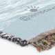 A quality printed throw has its advantages. This is a much finer weave throw than its loopier cousins, and though lighter, it is worth the investment for custom room accessorizing. The back is much prettier than the typical brown, and the fringe on the long sides very vivid, the selvage nicely done. Before photographing, I washed the throw in cold water, delicate, with a thicker woven throw the same size. On tumble dry low, this throw was dry in half the time as the other. This is a very practical quality if you use throws for furniture covers or to wrap up in frequently. The sleekness of the fabric makes it a great layer for accenting or protecting without the feeling of sitting on too much stuff. Perfect for napping or when you feel a light chill coming on. The color printing is beautiful and on this fabric, matched the design and color of my Photoshop image. This is an advantage for blending room fabrics and colors. The fringe on the short sides prints the colors from the design image and therefore varies from the side fringe. I streaked a white fractal line through the plaid pattern to give the illusion of weaving. This printed as crisp as an illusory thread, and put some white in the short side fringe, showing another advantage of print vs loomed- for artistic purposes, line lines, detail, and color integrity can be planned and preserved. My loomed throws have color limitations and more of a needlepoint texture. Print throws reproduce an exact image. The throw felt a little stiff straight out of the package, but this went away in the first delicate wash. Of course I searched the wash water for ink or bleeding and there was none.