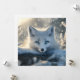 This enchanting image features a young Arctic fox with piercing blue eyes gazing into the distance. The fox is nestled amongst snow-covered branches, creating a magical winter scene. The soft light and delicate snowflakes add to the dreamlike quality of the image.