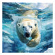 Arctic Mirage: The Swimming Monarch. A stunning visual of a majestic polar bear emerging from the icy water, captured in fluid stylized watercolour strokes. The interplay of light and water creates an ethereal effect, as if the polar bear exists between two worlds - reality and dream.