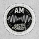 Featuring the Arctic Monkeys' famous AM sound wave logo, flanked by the text 'AM' at the top and 'ARCTIC MONKEYS' at the bottom in a matching white textured font.
