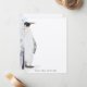 An elegant animal themed modern notecard featuring a watercolor painted penguin against a stark white minimalist background. The backside of these note cards feature the animal printed in large size.
