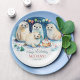 Cute baby seals arctic winter birthday party personalized paper plates template , watercolor winter wonderland cute baby seals having a party with a birthday cake winter themed children birthday party personalized table decor