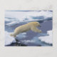 Arctic, Svalbard, Polar Bear extending and rising while leaping from one ice floe to another with blue water background � Stoney and Jan Edwards / DanitaDelimont.com