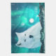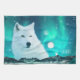Arctic wolf and magical night with northern lights kitchen towel