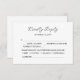 Our wedding RSVP card is the perfect addition to your contemporary wedding invitation suite. With its sleek design and elegant simplicity, this card will surely leave a lasting impression on your guests. Featuring the words "Kindly Reply," delicately crafted in an elegant script, these RSVP cards convey a sense of sophistication and refined taste. Your guests will be enchanted by the romantic typography while appreciating the modern twist it brings to your wedding stationery. To ensure everyone is catered to, our RSVP cards also provide space for menu options. This thoughtful addition allows your guests to specify their meal preferences, making it easier for you to plan a delightful culinary experience on your special day. Not only do these wedding RSVP cards exude charm and elegance but they also offer practicality and efficiency in managing your guest list. By providing a pre-addressed return envelope, your guests will have no trouble sending back their responses promptly. Make your wedding preparations a breeze and add that touch of modernity to your special day. Order your RSVP cards today and impress your guests with your impeccable taste.