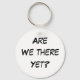 The age old question you hear coming from the back seat that every parent has heard. "Are we there yet?" An amusing keychain.