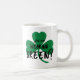 Get ready for St. Patrick's Day with a mug featuring a green shamrock featuring the words "Are you wearing green?" over it on each side.