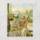 Argenteuil, 1875. Edouard Manet . Summer landscape in warm colors. A woman and a man are sitting on the pier. Behind them are yachts and boats. On the opposite bank there is a small town. There are light clouds in the blue sky. Reproduction of famous works of art images in the public domain.