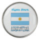 Personalized golf ball markers feature the blue and white Argentine flag with the word ARGENTINA below. A place to add your name, in blue letters, makes for a personalized touch or a customized creative gift. The flag is two light blue horizontal stripes on top and bottom with a white stripe in the center. In the center of the white stripe is a yellow sun with a man's face. Fun stocking stuffer. Cool to use at golf tournaments played at family reunions, travel groups, and clubs.