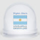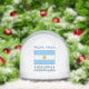 Personalized snow globe features the Argentine flag with the word ARGENTINA underneath in the colors of the flag. Above, in light blue letters, is s place for a name. Fun holiday gift or stocking stuffer.