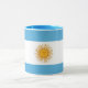 Show your Argentinian pride with this stylish coffee mug featuring the iconic light blue and white colors of the Argentina flag with its radiant Sun of May.