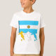 Three soccer players play in front of the Argentinian flag. Country name Argentina is on the side