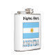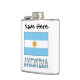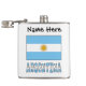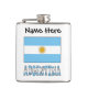 The blue and white Argentine flag has the word ARGENTINA below. A place to add your name makes for a personalized touch or a customized creative gift. The flag is two light blue horizontal stripes on top and bottom with a white stripe in the center. In the center of the white stripe is a yellow sun with a man's face.