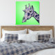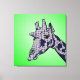 A fun design for those who love African Safari themed design. This curious giraffes head looks in from the side with a green background. The giraffe has a blue argyle pattern on it's skin and blue spots.