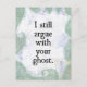 I Still Argue With Your Ghost - poignant text abstract with seafoam green swirls over a white background with lavender and yellow accents.