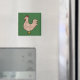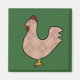 The folk art rooster on this magnet is in the style of the type cut with a scroll saw from a plank of wood, but with a funky twist. The chicken has the typical red wattle and comb, but his body is filled with an argyle pattern in varying shades of beige and brown. From my original digitally created image.