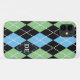 Argyle pattern black, gray and green monogram Case-Mate iPhone case