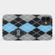 Argyle pattern black, grey blue monogram Case-Mate iPhone case