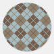 Argyle Pattern in Blue and Taupe Classic Round Sticker