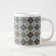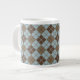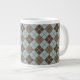 Argyle Pattern in Blue and Taupe Large Coffee Mug