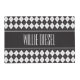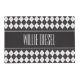 Black and white argyle pattern personalized pet placemat. Matching pet bowls, bed, blanket and more available.
