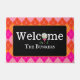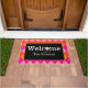 Elevate your entryway with our enchanting pink and orange argyle design personalized welcome mat, with a fun golf ball on a blue tee replacing the O in Welcome. Dress up your entryway with a golf-themed welcome mat. The perfect gift for the avid golfer, or 19th hole golf course clubhouse.
